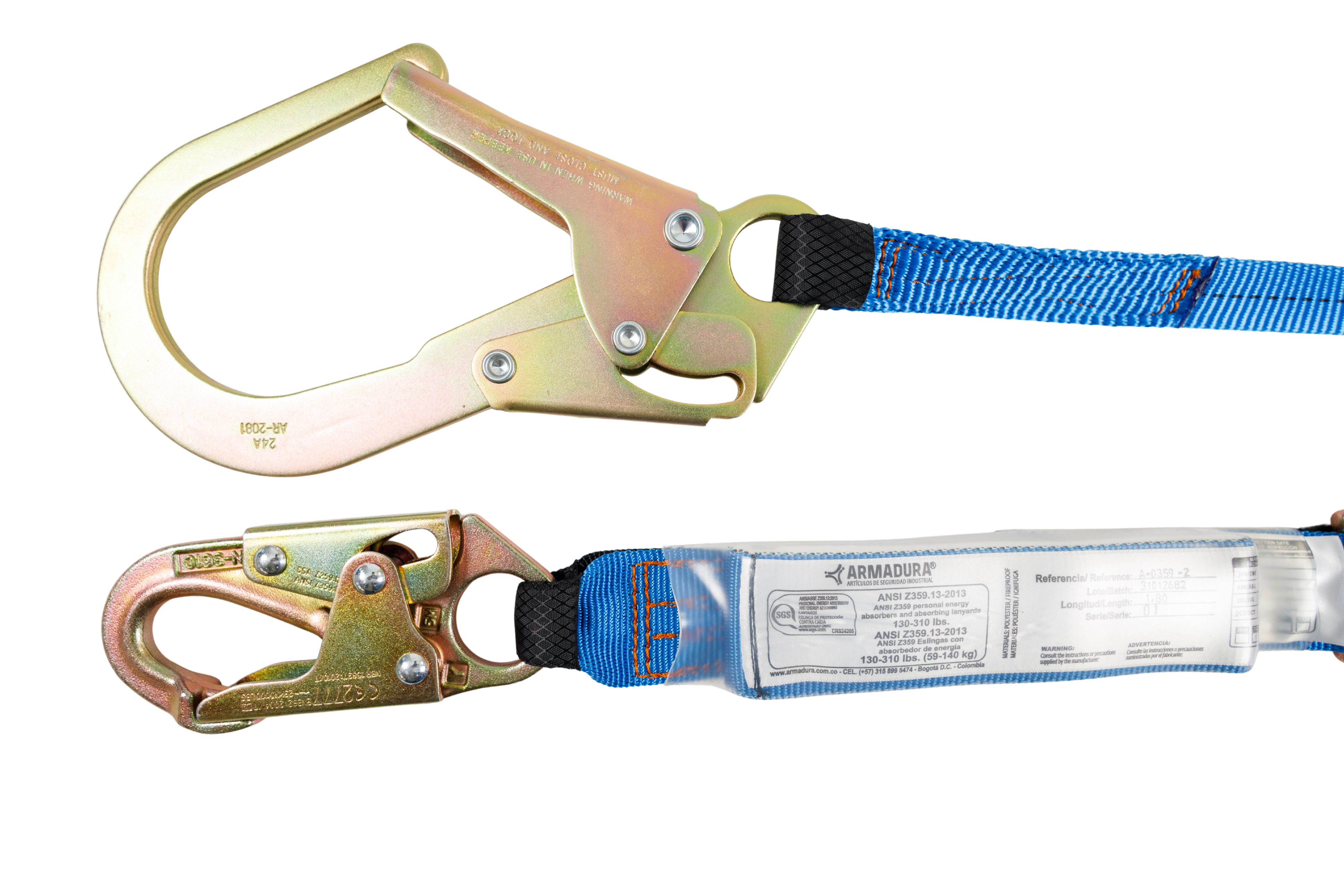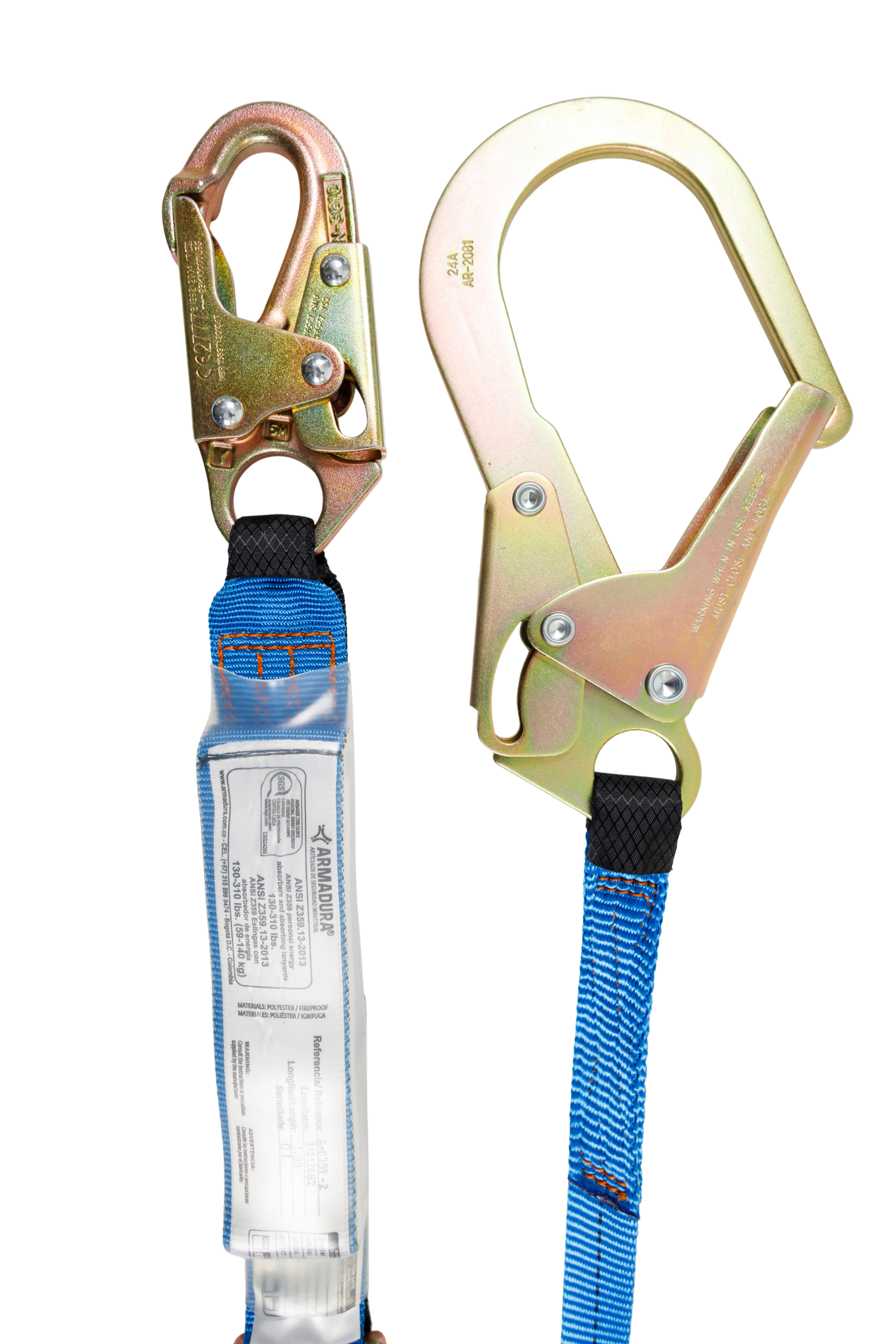 Eslinga de protección sencilla con absorbedor de energía, parte de un sistema personal de detención de caídas, certificada bajo la norma ANSI/ASSPZ359.13-2013