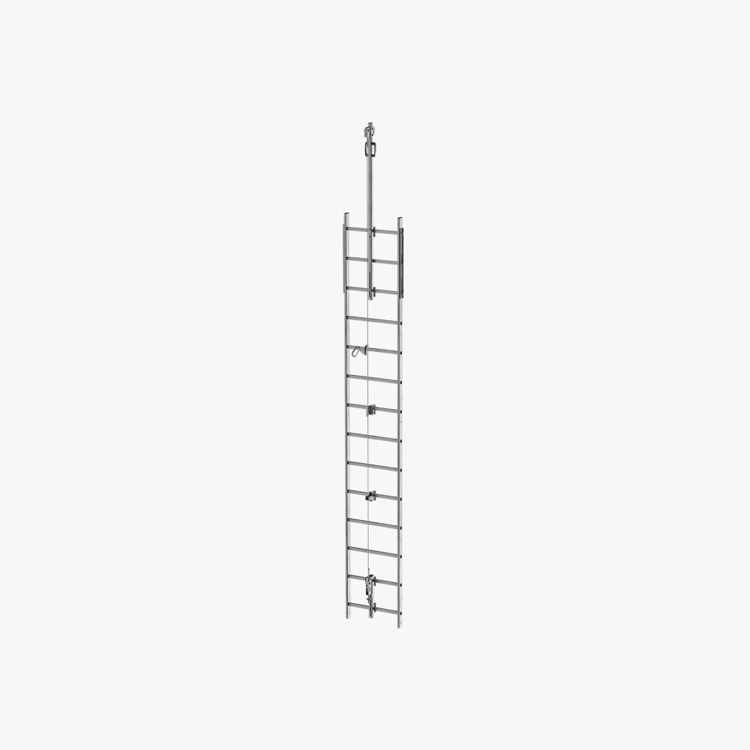 Dispositivo deslizable por cable con amortiguador integrado, que permite el ascenso y descenso de forma controlada y segura.